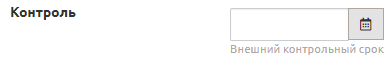 - Поле ввода даты установления внешнего контрольного срока (вводится вручную в поле « » или при помощи кнопки меню календаря « »).